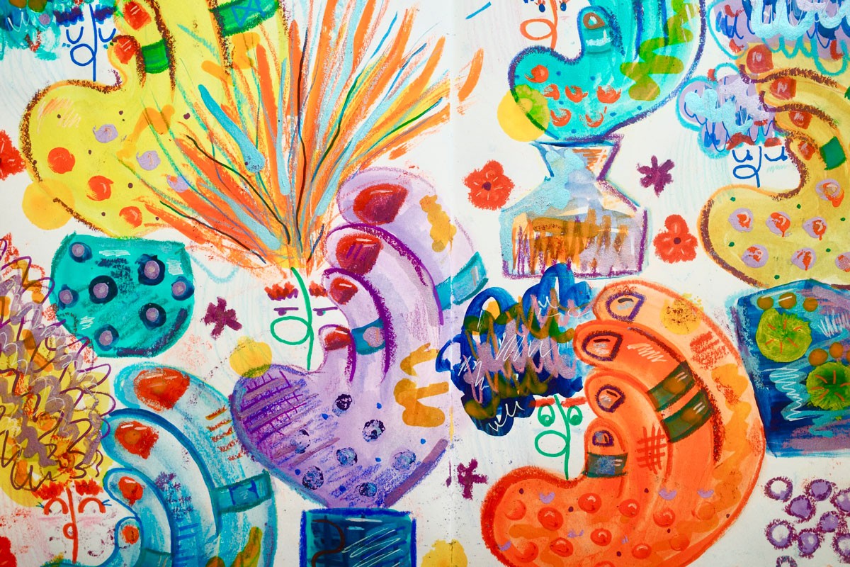 In my practice, developing a new illustration style from scratch has nothing to do with digital tools, mind mapping, or brainstorming with AI to aid my own imagination. I don’t browse Pinterest in search of ideas, I don’t use trends as creative direction. My illustration styles unravel on empty sketchbook pages. When devices are off, and I’m left alone with my thoughts. With my pencils. In silence.