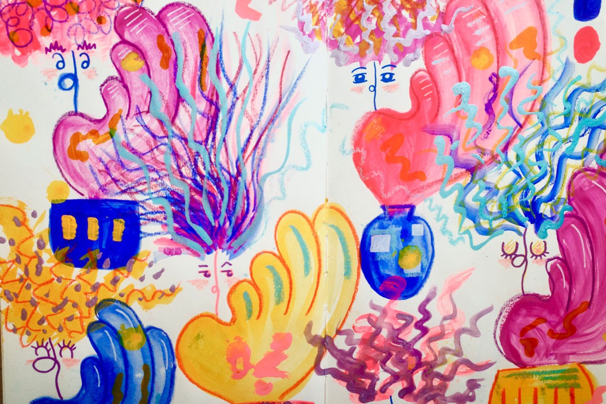 Only when the style direction is decided I take my sketches to Procreate to iterate further and introduce more colors, textures, and movement. Because of the work I do before, nothing that comes out of this step feels sudden or surprising. It’s refining of what I created originally. On paper. From scratch.