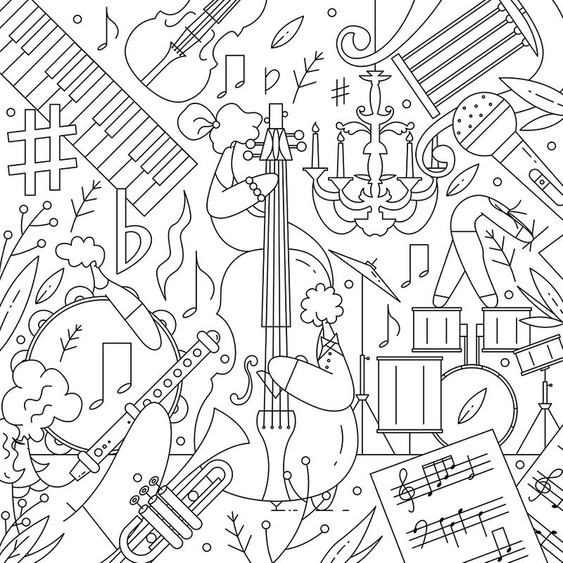 Pigment is a popular digital coloring app, known for its wide selection of artist-created content. I was invited to make a coloring book for their platform focused on the rich world of the arts.