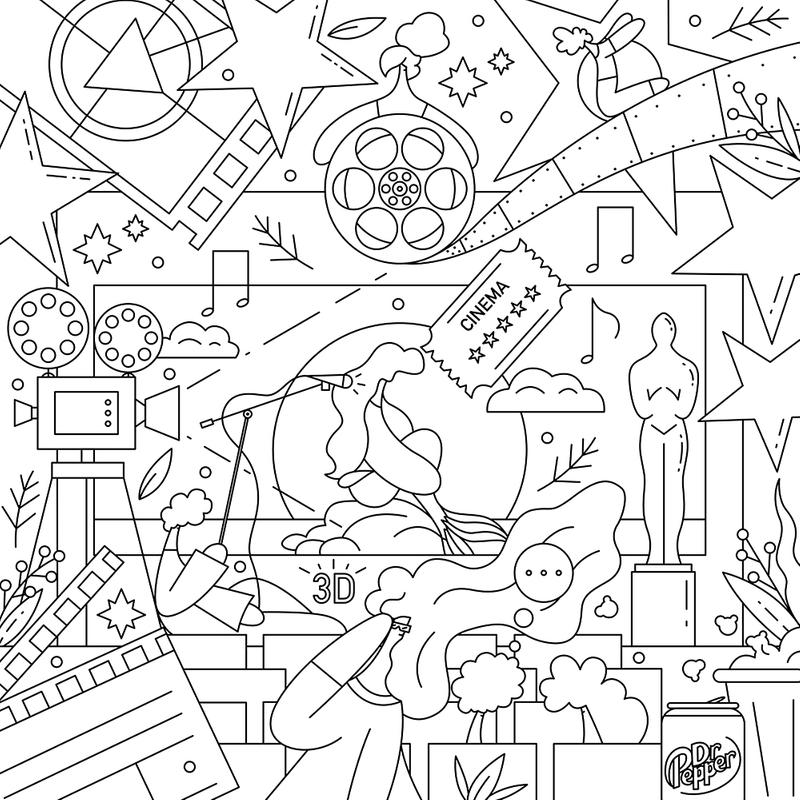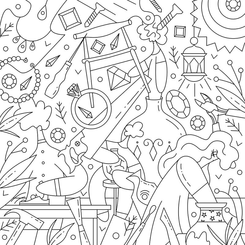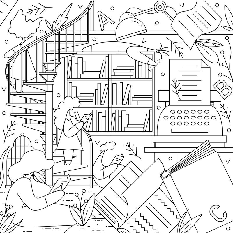 The completed set featured 10 black-and-white vector illustrations, each carefully composed and delivered as high-quality assets. Pigment users could select, customize, and color each page within the app.